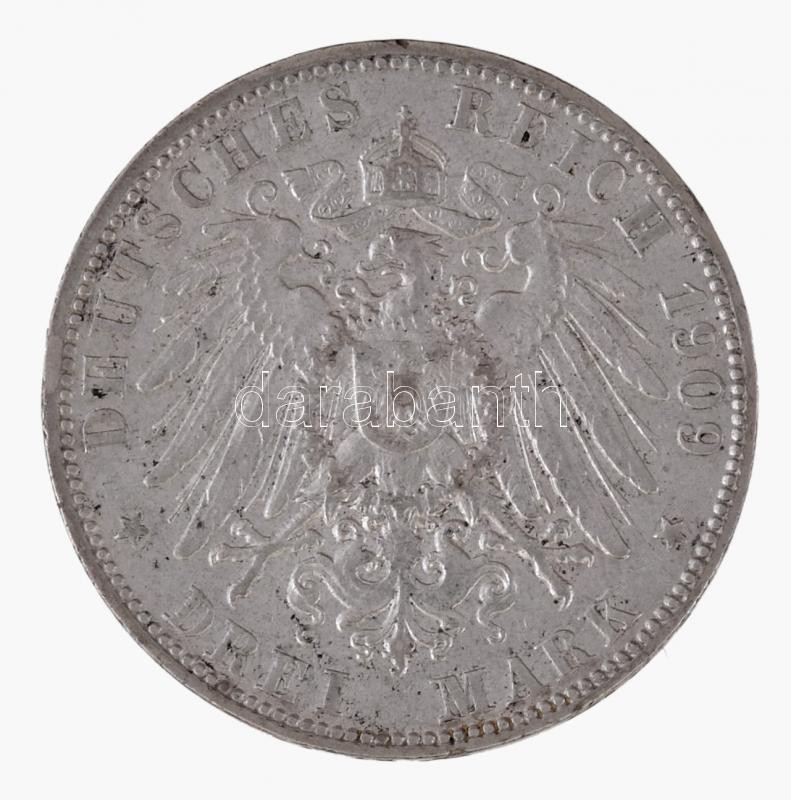 Német Államok / Hamburg 1909J 3M Ag (16,64g) T:2 / German States / Hamburg 1909J 3 Mark Ag (16,64g) C:XF Krause KM#296
