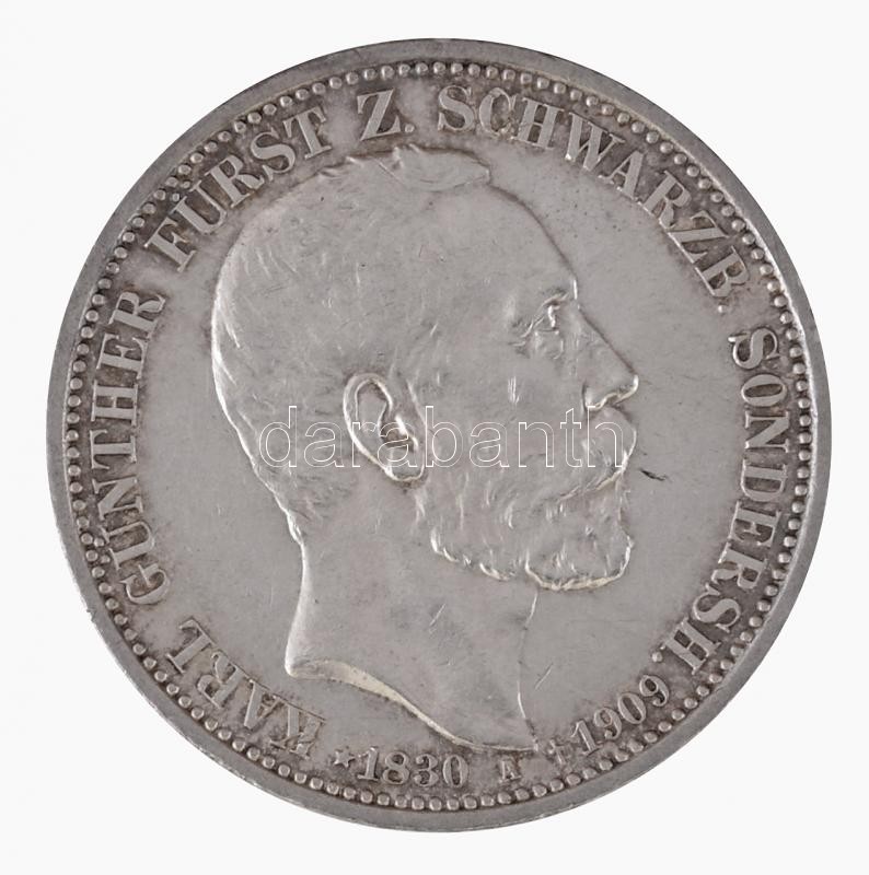 Német Államok / Schwarzburg-Sonderhausen 1909A 3M Ag "Karl Günther" (16,69g) T:1-,2 / German States / Schwarzburg-Sonderhausen 1909A 3 Mark Ag "Karl Günther" (16,69g) C:AU,XF small patina