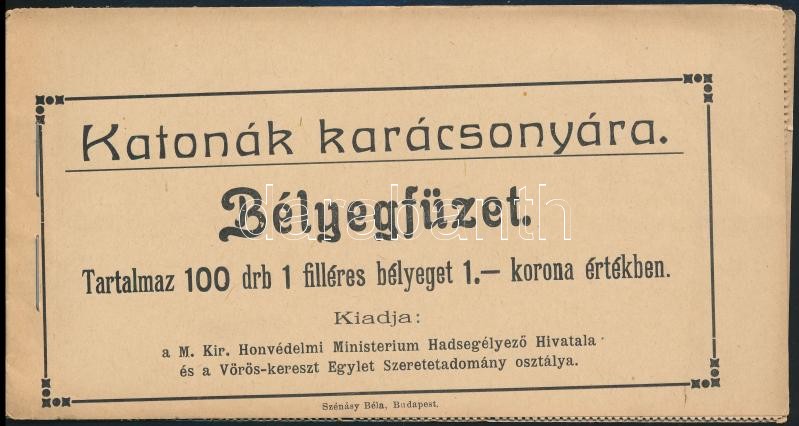 Beschreibung: 1915 Katonák karácsonyára 1f 100 darabos segélybélyegfüzet, magyar nyelvű / stamp booklet