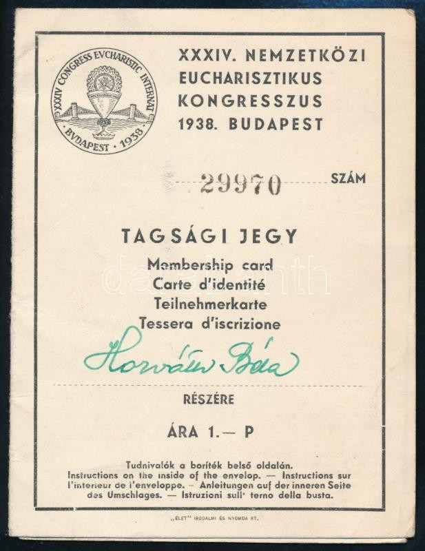 1938 Eucharisztikus Kongresszus térképes tagsági könyv https://www.darabanth.com/de/320-Fernauktion/320.0/Andere-Sammelgebiete/Dokument~500017/1938-Eucharisztikus-Kongresszus-terkepes-tagsagi-konyv~II1766799