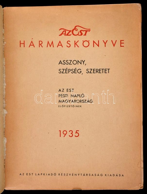 1935 Az Est hármas könyve. Bp, Est Lapkiadó. Kiadói papírkötésben, jav... https://www.darabanth.com/de/320-Fernauktion/320.0/Andere-Sammelgebiete/Drucksachen~500029/1935-Az-Est-harmas-konyve-Bp-Est-Lapkiado-Kiadoi-papirkotesben-javitott-kotessel-kiss~II1772163