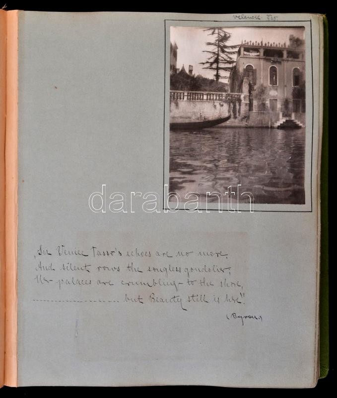 cca 1910-1920 Navratilné Hegedűs Rózsika saját készítésű fotóalbuma, benne közel 100 művészi igényű fényképpel. Több fotón is Hegedűs Sándor kereskedelemügyi miniszter, író és családja, valamint lakhelyük. Alatta kézzel írott idézetekkel, versekkel. Szép állapotban, egészvászon kötésben.