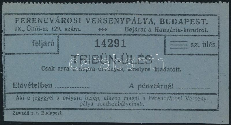 cca 1920-1930 Bp., Ferencvárosi Versenypálya tribün ülés belépőjegy, s... https://www.darabanth.com/de/320-Fernauktion/320.0/Andere-Sammelgebiete/Militaria~500027/cca-1920-1930-Bp-Ferencvarosi-Versenypalya-tribun-ules-belepojegy-szep-allapotban~II1769217
