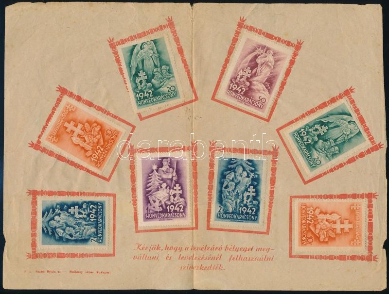 Beschreibung: Honvéd Karácsony 14 db levélzáró + levélzáró sor emléklapon
