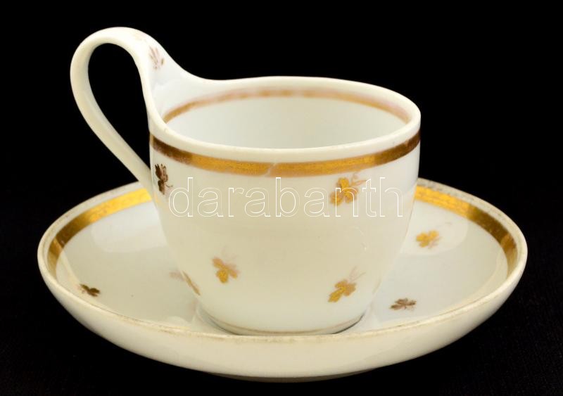 Jelzett porcelán teáscsésze alátéttel, kopott aranyozással https://www.darabanth.com/de/320-Fernauktion/320.0/Andere-Sammelgebiete/Porzellan~500007/Jelzett-porcelan-teascsesze-alatettel-kopott-aranyozassal~II1769504