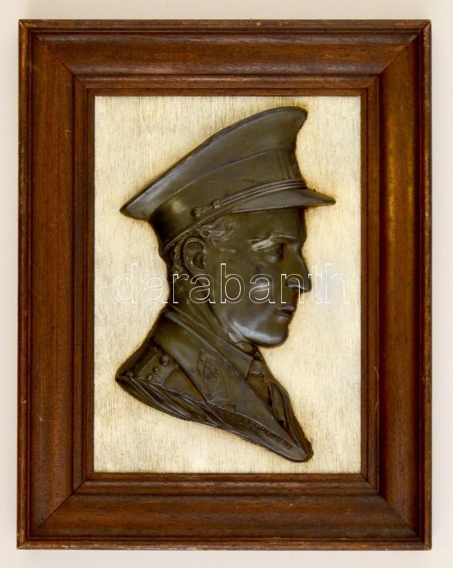 Johannes Dommisse (1878-1955): III. Lipót belga király protréja, dombormű, jelzett, fém, fa keretben, repedéssel, 25x18 cm
