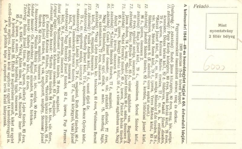 1909 A kolozsvári 1848-49-es honvédegylet tagjai a 60. évforduló idején, hátoldalon névsor / Members of 1848-49 military club at the time of the 60th anniversary from Cluj, members' names on the backside (b)