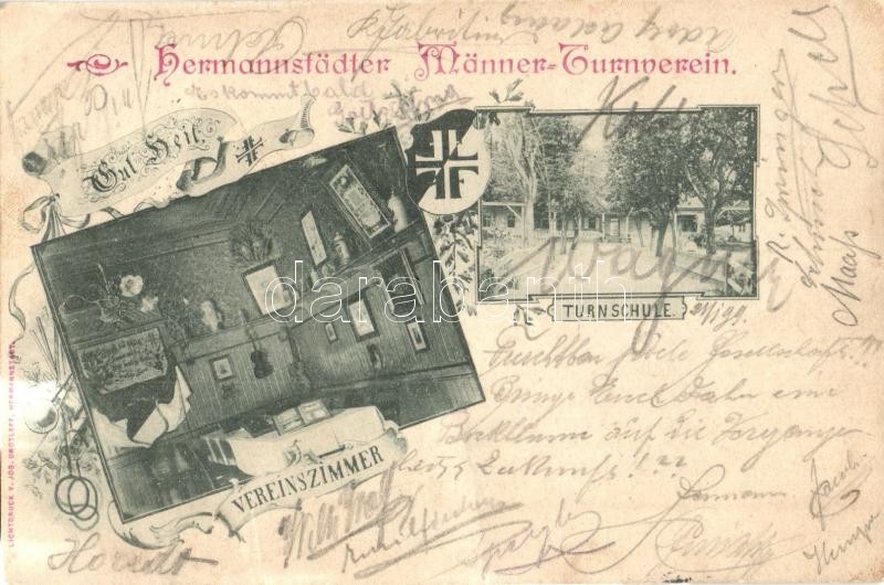 1899 Nagyszeben, Hermannstadt, Sibiu; Hermannstädter Männer-Turnverein, Vereinszimmer, Turnschule / Nagyszebeni Férfi Torna Egyesület, testnevelési iskola, szoba belső. Jos. Drotleff kiadása / Sibiu Men's Gymnastic Association, gymnastics school, room interior. floral Art Nouveau (fa)