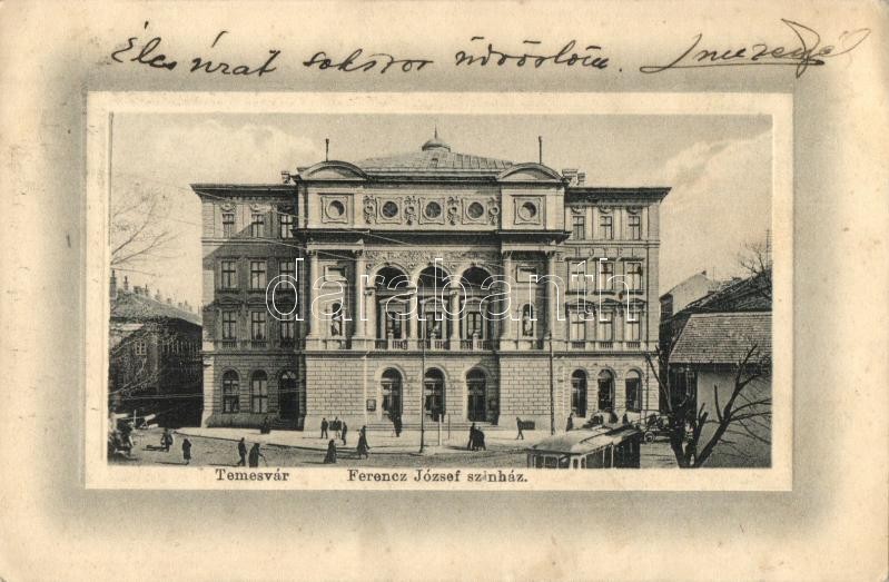 Temesvár, Timisoara; Ferenc József színház, villamos. Ideal W. L. Bp. ... https://www.darabanth.com/de/320-Fernauktion/320.0/Ansichtskarten/Siebenburgen~1500005/Temesvar-Timisoara-Ferenc-Jozsef-szinhaz-villamos-Ideal-W-L-Bp-6660-Franz-Joseph-Theat~II1768776