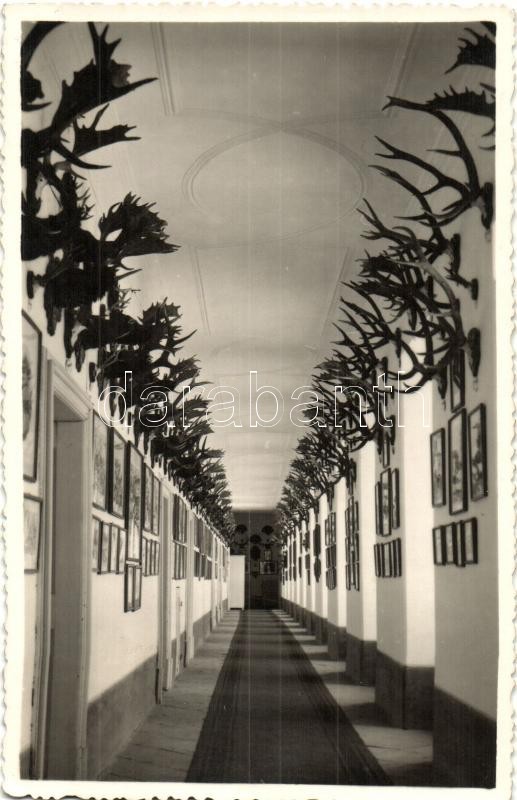 Beschreibung: 1936 Szentantal, Sväty Anton; Vadásztrófeák, agancsok a kastélyban (?) / hunting trophies, antlers in the castle (?) photo