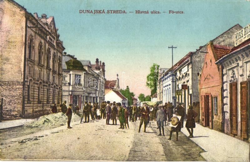 Dunaszerdahely, Dunajská Streda; Hlavná ulica / Fő utca, Kiss üzlete, ... https://www.darabanth.com/de/320-Fernauktion/320.0/Ansichtskarten/Slowakei~1500006/Dunaszerdahely-Dunajska-Streda-Hlavna-ulica-Fo-utca-Kiss-uzlete-gyogyszertar-Jozsua-Gol~II1766123