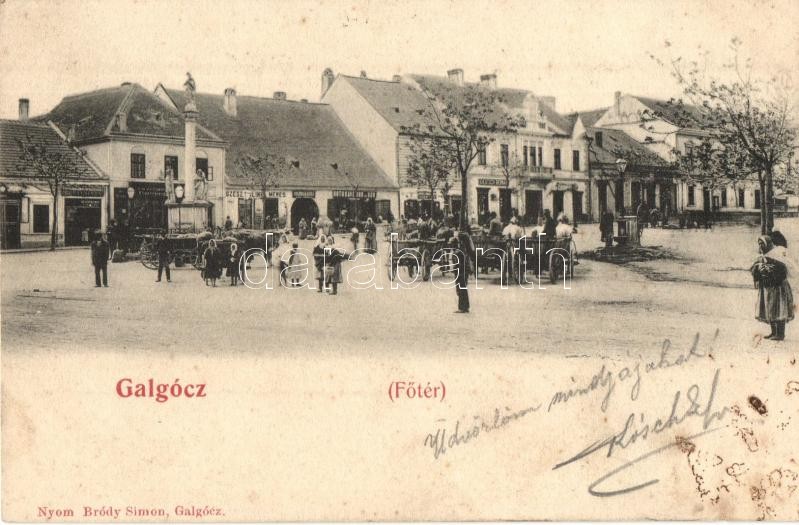 Beschreibung: Galgóc, Hlohovec; Fő tér, Roth, Deutsch Bernát üzlete, piac. Bródy Simon kiadása / main square, shops, market (EK)