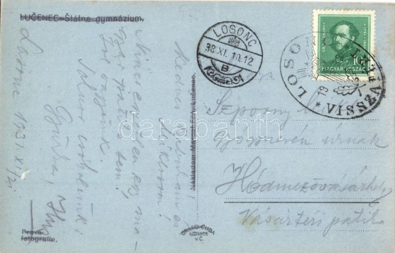 Losonc, Lucenec; Státne gymnázium / Gimnázium, iskola / grammar school... https://www.darabanth.com/de/320-Fernauktion/320.0/Ansichtskarten/Slowakei~1500006/Losonc-Lucenec-Statne-gymnazium-Gimnazium-iskola-grammar-school-plus-1938-Losonc-visszatert-~II1772062