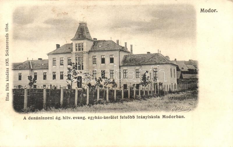 Modor, Modra; A dunáninneni evangélikus egyházkerület felsőbb leányisk... https://www.darabanth.com/de/320-Fernauktion/320.0/Ansichtskarten/Slowakei~1500006/Modor-Modra-A-dunaninneni-evangelikus-egyhazkerulet-felsobb-leanyiskolaja-Blau-Bela-kiadC3~II1770276