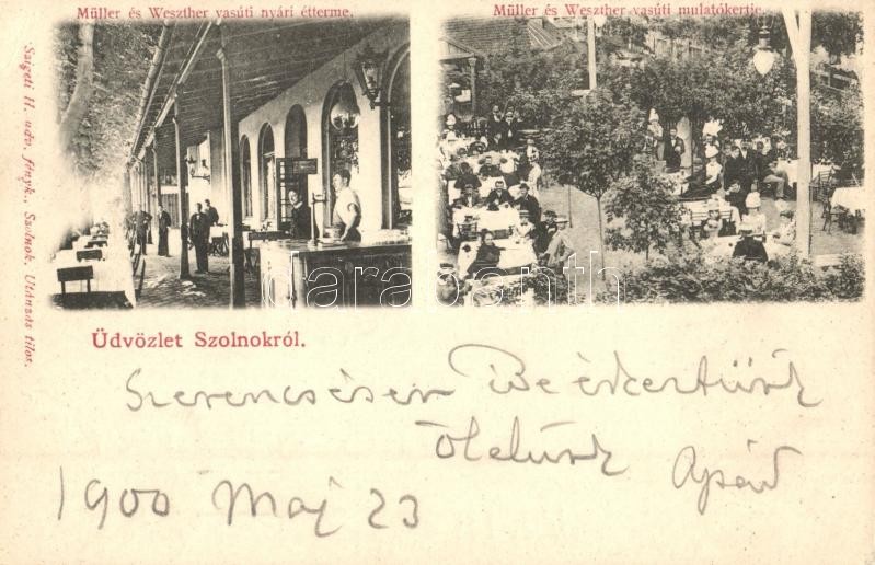 1900 Szolnok, Müller és Weszther vasúti nyári étterem és mulatókert, p... https://www.darabanth.com/de/320-Fernauktion/320.0/Ansichtskarten/Ungarn~1500004/1900-Szolnok-Muller-es-Weszther-vasuti-nyari-etterem-es-mulatokert-pincerek-Szigeti-H-fC3~II1743287
