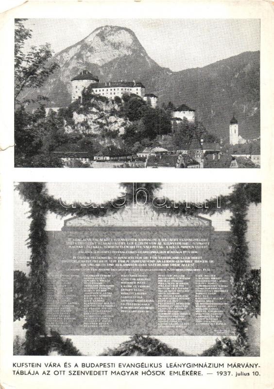 1937 Budapest V. Evangélikus leánygimnázium márványtáblája a Kufsteinb... https://www.darabanth.com/de/320-Fernauktion/320.0/Ansichtskarten/Ungarn~1500004/1937-Budapest-V-Evangelikus-leanygimnazium-marvanytablaja-a-Kufsteinben-szenvedett-magyar-hC5~II1699054