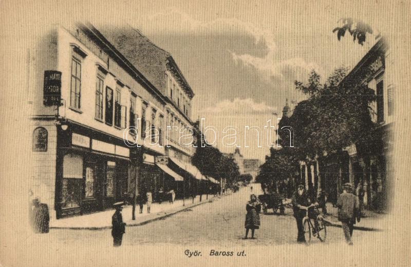 Győr, Baross út, üzletek, kerékpár. Szántó Imre kiadása https://www.darabanth.com/de/320-Fernauktion/320.0/Ansichtskarten/Ungarn~1500004/Gyor-Baross-ut-uzletek-kerekpar-Szanto-Imre-kiadasa~II1767817