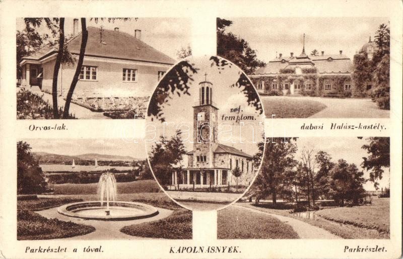 Kápolnásnyék, Orvos lak, Dabasi Halász kastély, Református templom, Pa... https://www.darabanth.com/de/320-Fernauktion/320.0/Ansichtskarten/Ungarn~1500004/Kapolnasnyek-Orvos-lak-Dabasi-Halasz-kastely-Reformatus-templom-Park-a-toval-Balogh-kiad~II1765794