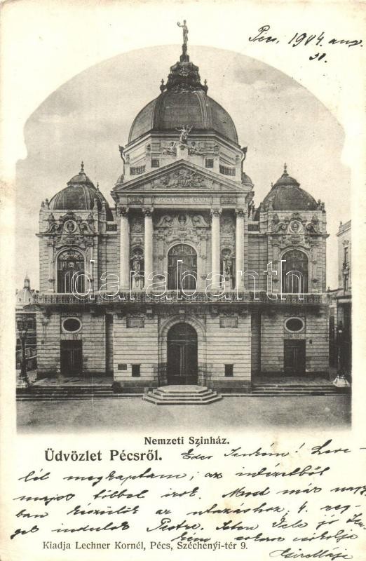 Pécs, Nemzeti Színház. Kiadja Lechner Kornél (EK) https://www.darabanth.com/de/320-Fernauktion/320.0/Ansichtskarten/Ungarn~1500004/Pecs-Nemzeti-Szinhaz-Kiadja-Lechner-Kornel-EK~II1773333