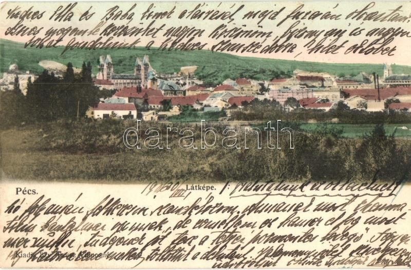 Beschreibung: Pécs, látkép. Özv. Tausz Vilmosné kiadása (szakadás / tear)