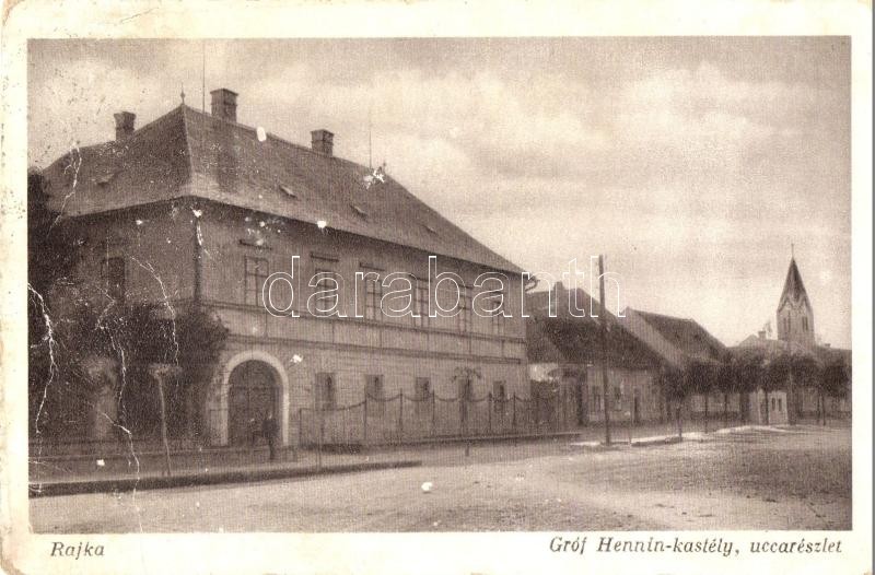 Rajka, Ragendorf; Gróf Hennin kastély, utcakép, templom (EB) https://www.darabanth.com/de/320-Fernauktion/320.0/Ansichtskarten/Ungarn~1500004/Rajka-Ragendorf-Grof-Hennin-kastely-utcakep-templom-EB~II1765804