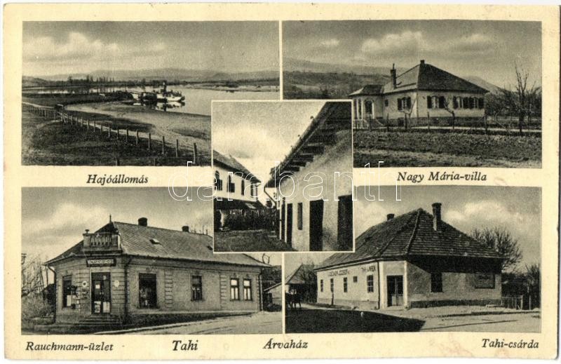 Tahi (Tahitótfalu), Hajóállomás, Nagy Mária villa, Rauchmann üzlet, Ár... https://www.darabanth.com/de/320-Fernauktion/320.0/Ansichtskarten/Ungarn~1500004/Tahi-Tahitotfalu-Hajoallomas-Nagy-Maria-villa-Rauchmann-uzlet-Aruhaz-Tahi-csarda-ve~II1772834