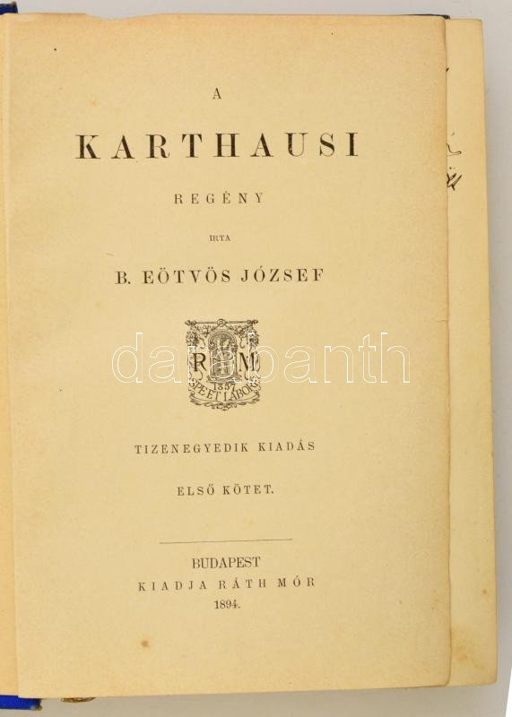 B. Eötvös József: A karthausi. I-II. kötet. (Egyben.) Regény. Bp.,1894... https://www.darabanth.com/de/320-Fernauktion/320.0/Bucher/Bucher-Andere-kuriositaten~2000016/B-Eotvos-Jozsef-A-karthausi-I-II-kotet-Egyben-Regeny-Bp-1894-Rath-Mor-Tizenegyedi~II1735811