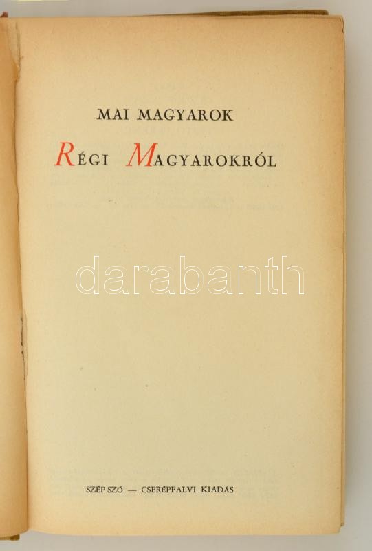 Mai magyarok régi magyarokról. Összeáll. Fejtő Ferenc. Bp., [1936], Szép Szó-Cserépfalvi. A Szép Szó könyvnapi kiadványa. József Attila A Dunánál c. versének első közlésével, valamint Móricz Zsigmond, Babits Mihály, Kassák Lajos, Ignotus Pál, Fejtő Ferenc, stb. írásaival. Kiadói egészvászonkötésben, kissé foltos borítóval, kissé sérült kötéssel, ceruzás bejelölésekkel.