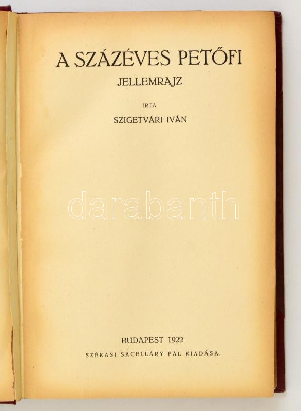 Szigetvári Iván: A százéves Petőfi. Jellemrajz. Bp., 1922, Székasi Sac... https://www.darabanth.com/de/320-Fernauktion/320.0/Bucher/Bucher-Andere-kuriositaten~2000016/Szigetvari-Ivan-A-szazeves-Petofi-Jellemrajz-Bp-1922-Szekasi-Sacellary-Pal-Atkotot~II1754097