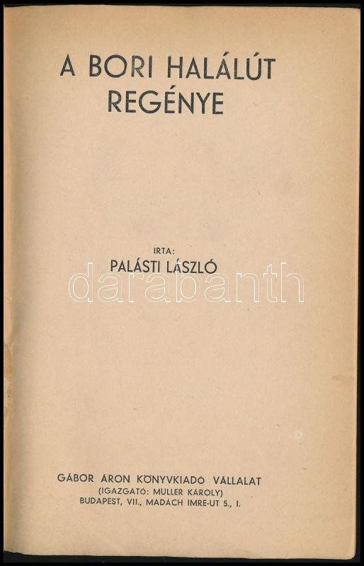 Palásti László: A Bori halálút regénye. (Magyar Golgota.) Bp.,(1945), ... https://www.darabanth.com/de/320-Fernauktion/320.0/Bucher/Bucher-Geschichte~2000004/Palasti-Laszlo-A-Bori-halalut-regenye-Magyar-Golgota-Bp-1945-Gabor-Aron-Legrady~II1722260