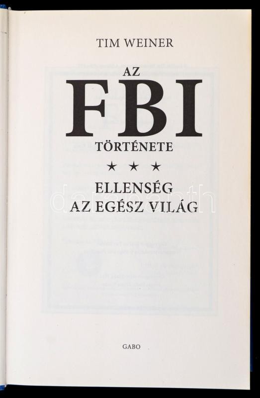 Tim Weiner: Az FBI története. Ellenség az egész világ. Fordította: Magyarics Péter. Bp.,2013, Gabo. Kiadói kartonált papírkötés, kiadói papír védőborítóban.
