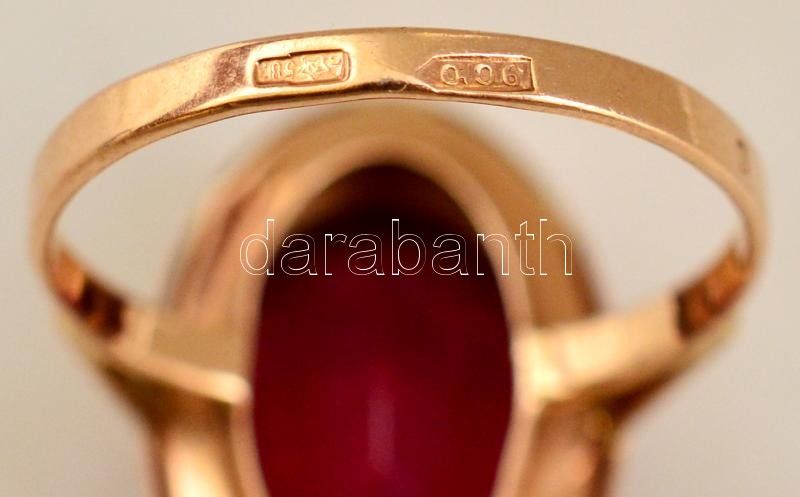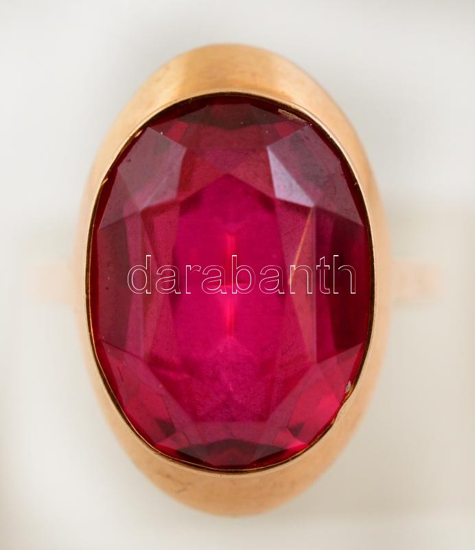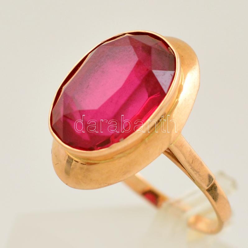 Arany(Au) 14K szintetikus rubinnal díszített gyűrű, jelzett, méret: 59... https://www.darabanth.com/de/320-Fernauktion/320.0/Juwelen/Juwelen~500031/AranyAu-14K-szintetikus-rubinnal-diszitett-gyuru-jelzett-meret-59-brutto-6-1-g~II1772953
