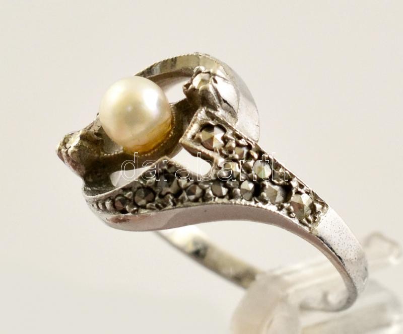 Ezüst (Ag) gyűrű, markazit és tenyésztett gyöngy díszítéssel, jelzett,... https://www.darabanth.com/de/320-Fernauktion/320.0/Juwelen/Juwelen~500031/Ezust-Ag-gyuru-markazit-es-tenyesztett-gyongy-diszitessel-jelzett-meret-53-brutto-~II1773476