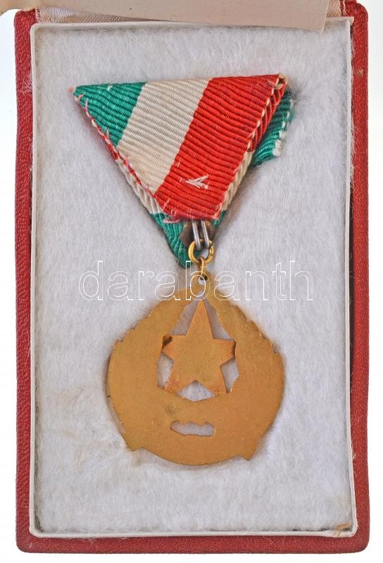 Beschreibung: 1957. "Munkás-Paraszt Hatalomért Emlékérem" aranyozott, zománcozott Br kitüntetés mellszalagon, eredeti dísztokban, viselői igazolvánnyal T:1-