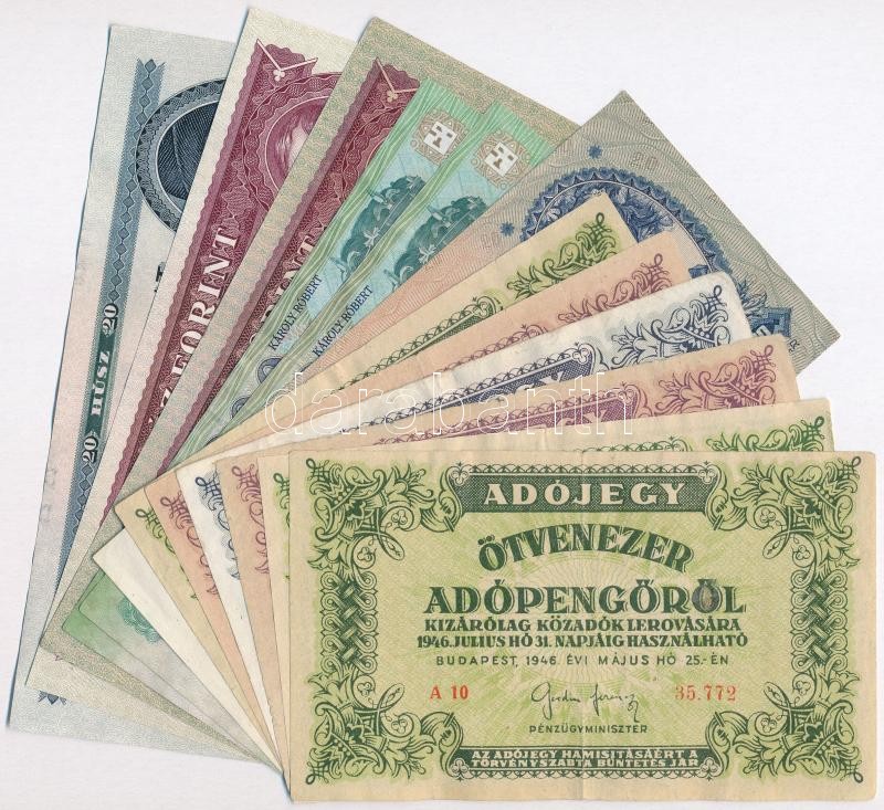 Beschreibung: 12db-os vegyes magyar pengő, adópengő és forint bankjegy tétel T:III,III-