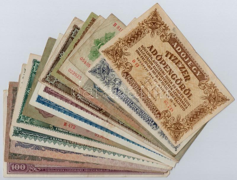 14db-os vegyes magyar pengő bankjegy tétel, benne adópengők is T:III,I... https://www.darabanth.com/de/320-Fernauktion/320.0/Numismatik/Ungarische-Banknoten~2500006/14db-os-vegyes-magyar-pengo-bankjegy-tetel-benne-adopengok-is-TIII-III-~II1768673