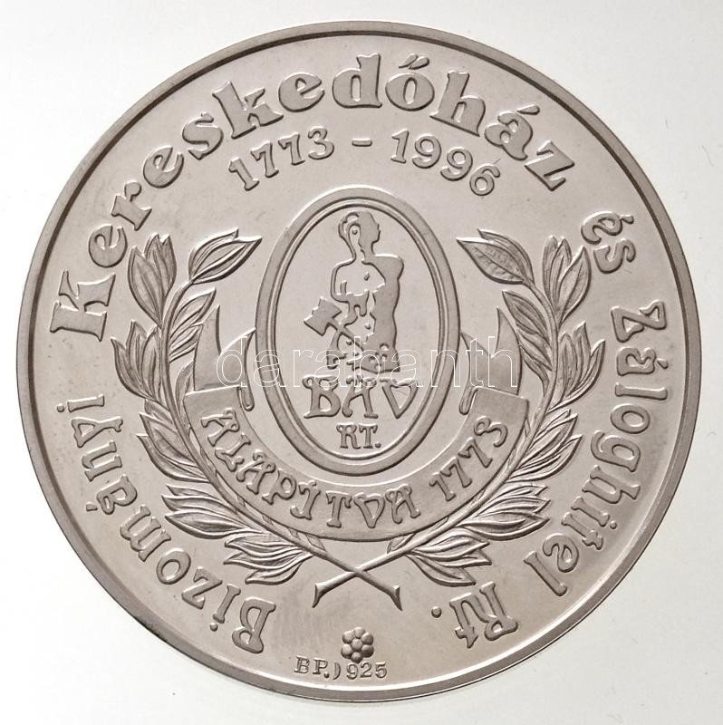 Bognár György (1944-) 1996. "Bizományi Kereskedőház és Záloghitel Rt. 1773-1996 / Aukció 1100 év értékeiből a millecentenárium emlékére" jelzett Ag emlékérem tanústvánnyal, eredeti tokban (31,1g/0.925/42,5mm) T:PP kis ujjlenyomat