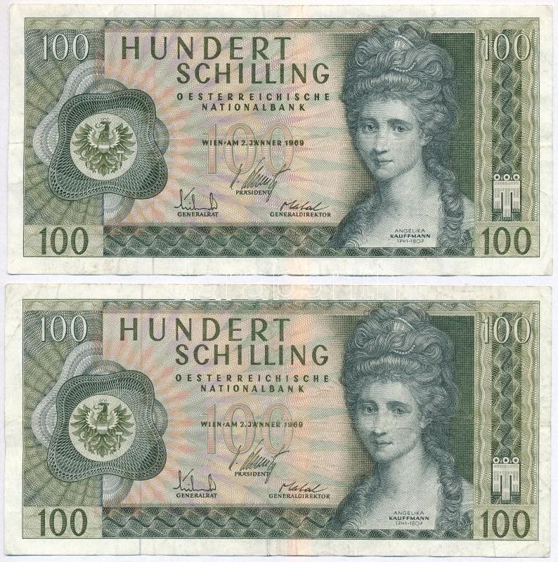 Austria 1969 (1970). 100 Schi... https://www.darabanth.com/de/320-Fernauktion/320.0/Numismatik/Weltweit-Banknoten~2500011/Ausztria-1969-1970-100Sch-2x-TIII--Austria-1969-1970-100-Schilling-2x-CF--Krause-145~II1767772