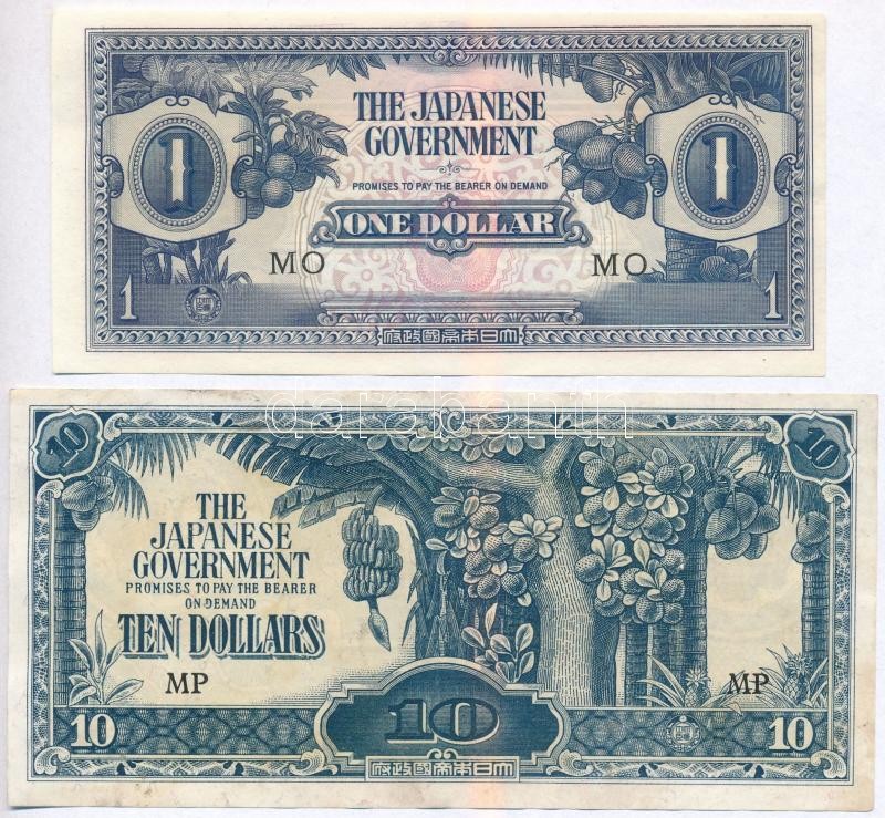 Malaya / Japán megszállás 1942. 1$ + 1942-1944. 10$ T:II,II-
