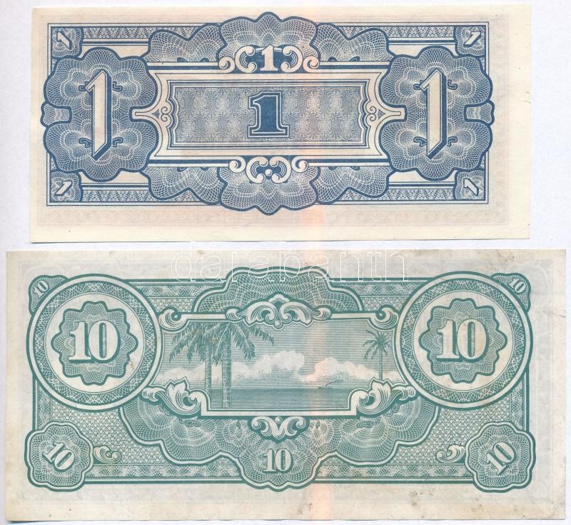 Beschreibung: Malaya / Japán megszállás 1942. 1$ + 1942-1944. 10$ T:II,II-