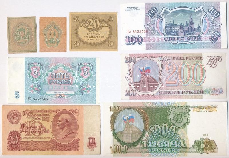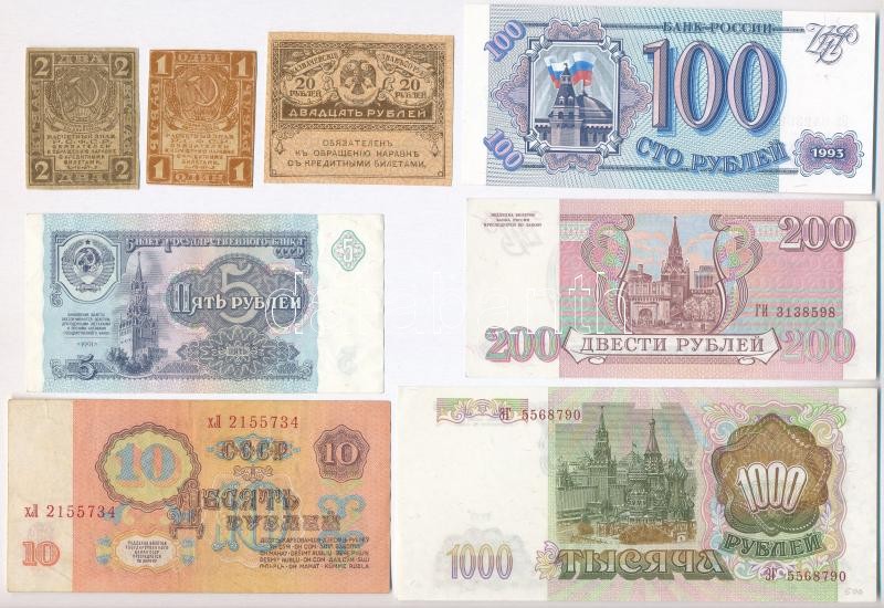 Orosz Birodalom / Szocialista Szovjet Szövetségi Köztársaság / Szovjetunió / Oroszország 8db-os vegyes bankjegy tétel T:I--III