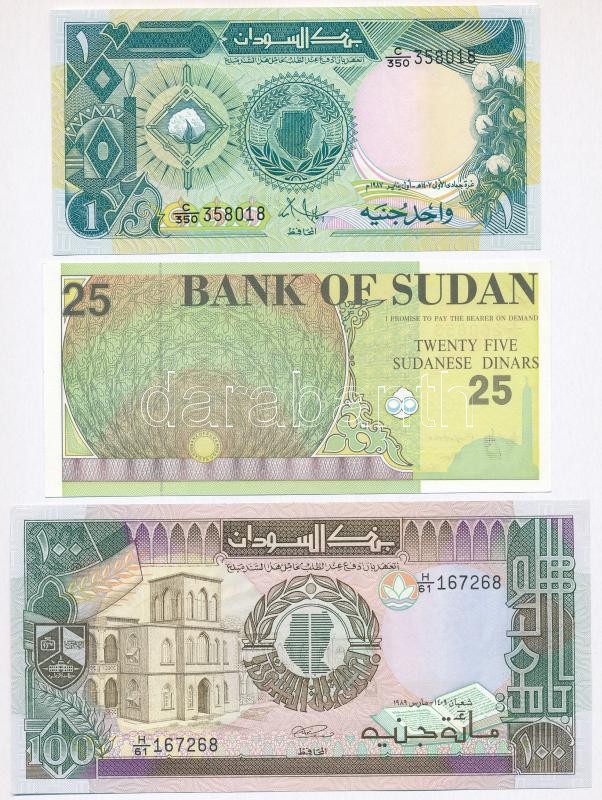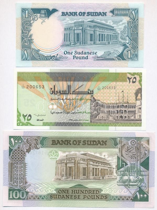 Sudan 1987. 1 Pound + 1989. 100 Pounds + 1992. 25 Pounds C:UNC