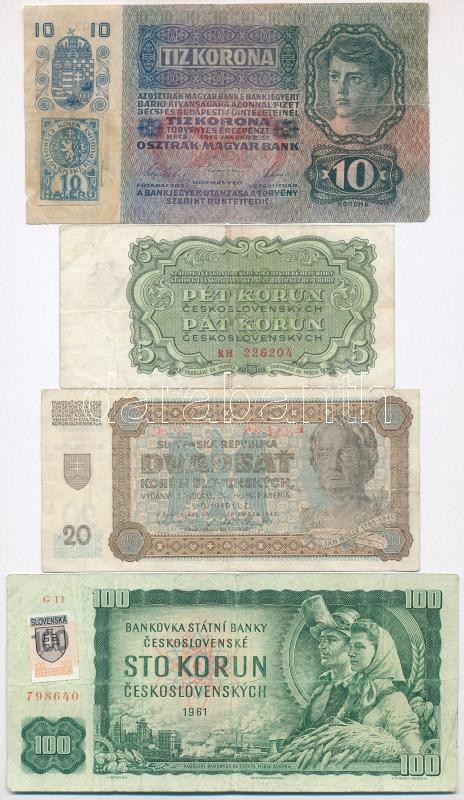 Vegyes: 1915. 10K csehszlovák bélyeggel + Csehszlovákia 1961. 5K + Szl... https://www.darabanth.com/de/320-Fernauktion/320.0/Numismatik/Weltweit-Banknoten~2500011/Vegyes-1915-10K-csehszlovak-belyeggel-plus-Csehszlovakia-1961-5K-plus-Szlovakia-1942-20K-plus-1993-~II1767529