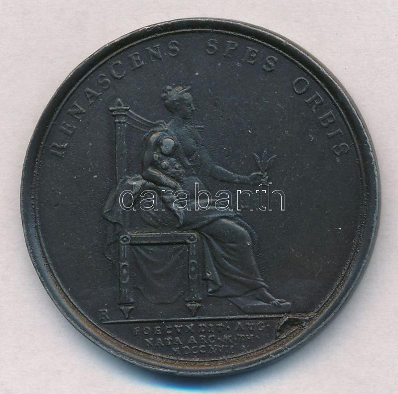 Ausztria 1717. Mária Terézia születésére kiadott emlékérem ólom lecsapata. "ELISAB CHR CAR VI AVGVSTA MATER PAT / RENASCENS SPES ORBIS" (43mm) T:2- ph.