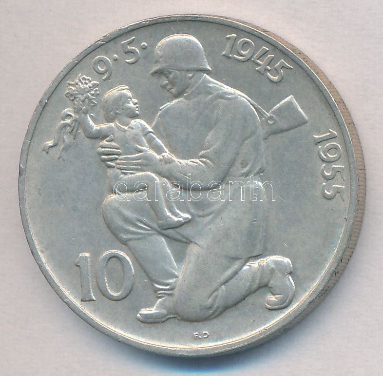 Czechoslovakia 1955. 10 Korun Ag "10th Anniversary - Liberation from Germany" C:AU,XF