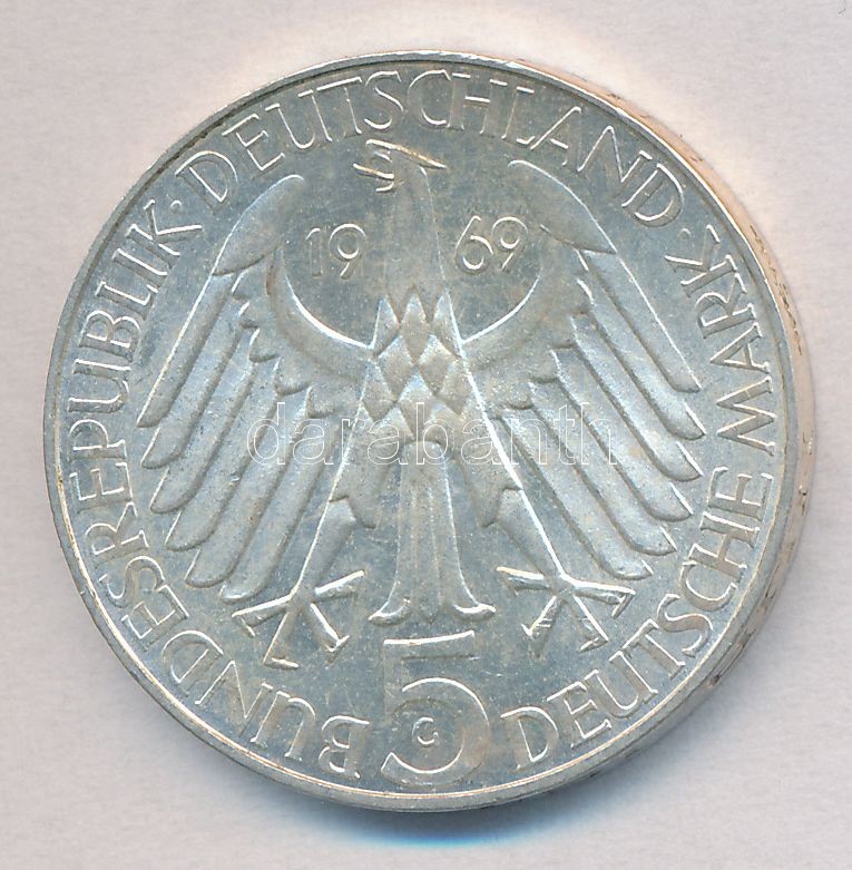 NSZK 1968D 5M Ag "Theodor Fontane születésének 150. évfordulója" T:1- FRG 1968D 5 Mark Ag "150th Anniversary - Birth of Theodor Fontane" C:AU Krause KM#123.1