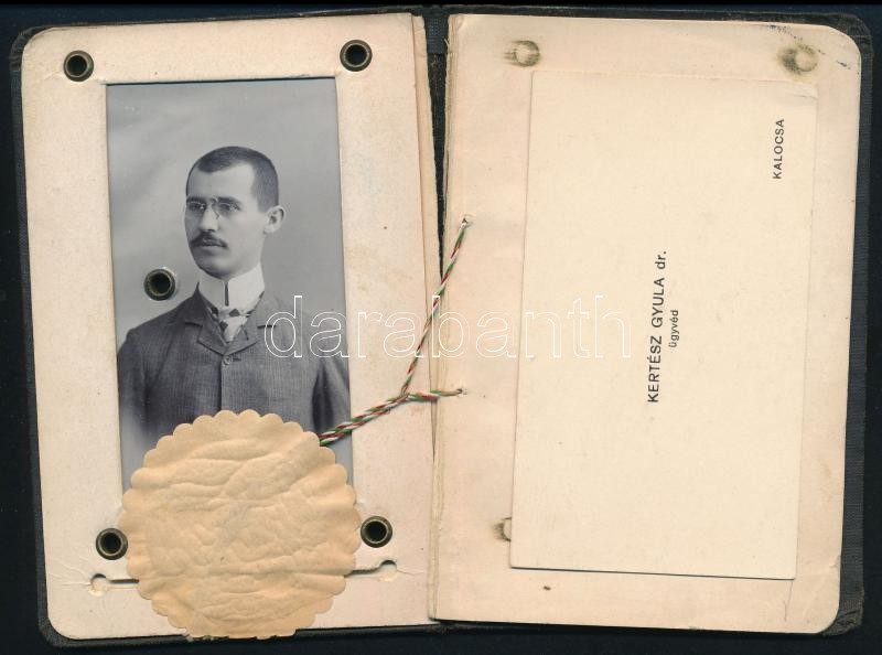 1906 Fényképes ügyvédjelölti igazolvány és névjegykártya https://www.darabanth.com/de/321-Fernauktion/321.0/Andere-Sammelgebiete/Dokument~500016/1906-Fenykepes-ugyvedjelolti-igazolvany-es-nevjegykartya~II1778799