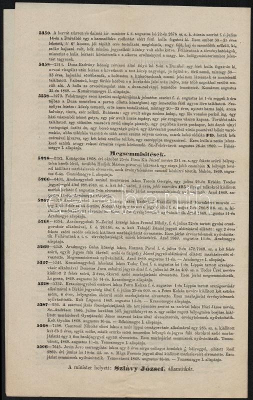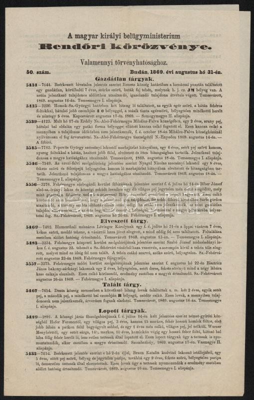 1869 A m. kir. Belügyminisztérium körözvénye mindennemű dolgokról, rab... https://www.darabanth.com/de/321-Fernauktion/321.0/Andere-Sammelgebiete/Drucksachen~500029/1869-A-m-kir-Belugyminiszterium-korozvenye-mindennemu-dolgokrol-rablok-gyilkosok-megtal~II1779348