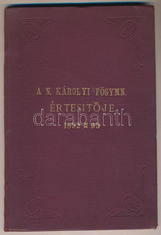 Beschreibung: 1893 Nagykároly, A kegyes tanítórendiek vezetése alatt álló nagykárolyi római katolikus főgimnázium értesítője az 1892-93. iskolai évről, jó állapotban, 100p