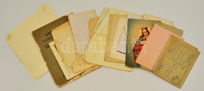 cca 1900-1950 Vegyes papírrégiség tétel, közte tábori posta levelezőlapok, keményhátú fotó, Értesítő Vas- és Fémipari Kis- és Középgyárak Szövetségének szakirányú iparos tanonciskolája 1929-30. évi működéséről, stb.